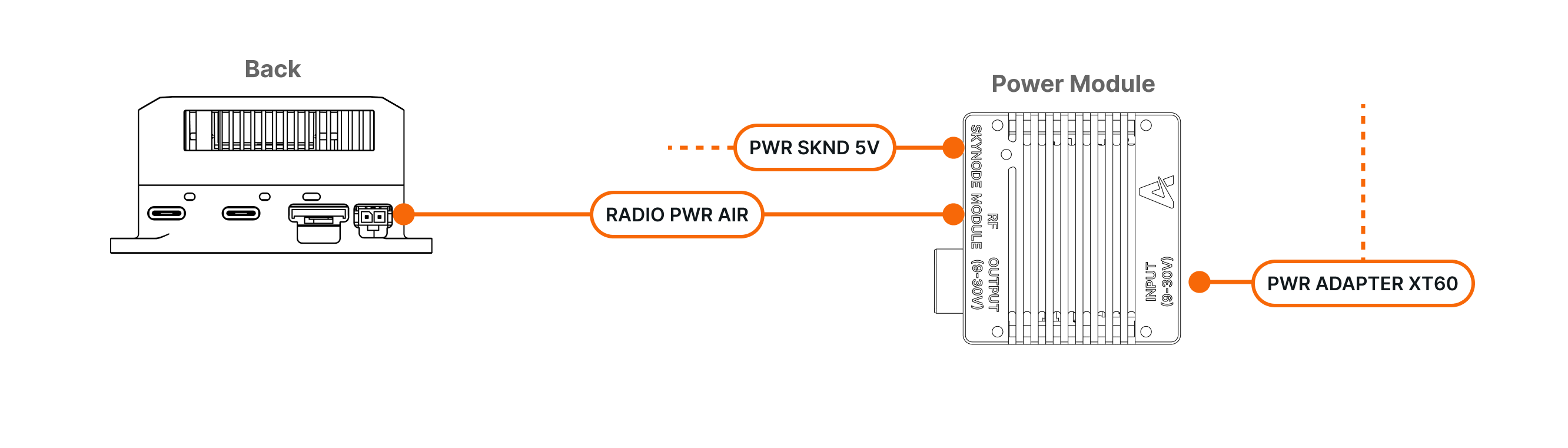 In the setup shown above, both Skynode as well as [Radio Air](https://docs.auterion.com/hardware-integration/skynode/advanced-configuration/ground-station-link) unit can be connected to the same Power Module.