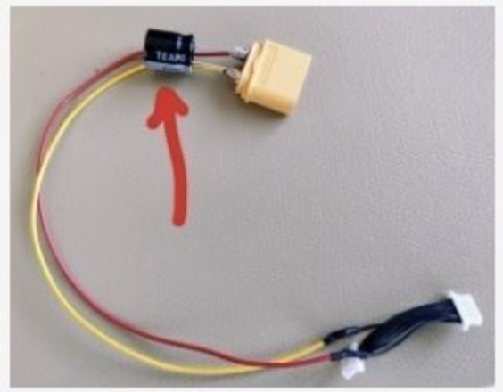 <figure><img src="https://3329189600-files.gitbook.io/~/files/v0/b/gitbook-x-prod.appspot.com/o/spaces%2FFW1Ge1p1f6WHyiYCb146%2Fuploads%2Fgit-blob-05daabea6ab6a534b1c32007399d304b4ecf745b%2FScreenshot%202025-07-04%20at%2010.45.18.png?alt=media" alt=""><figcaption><p>Capacitor directly soldered to the XT60 Plug</p></figcaption></figure>