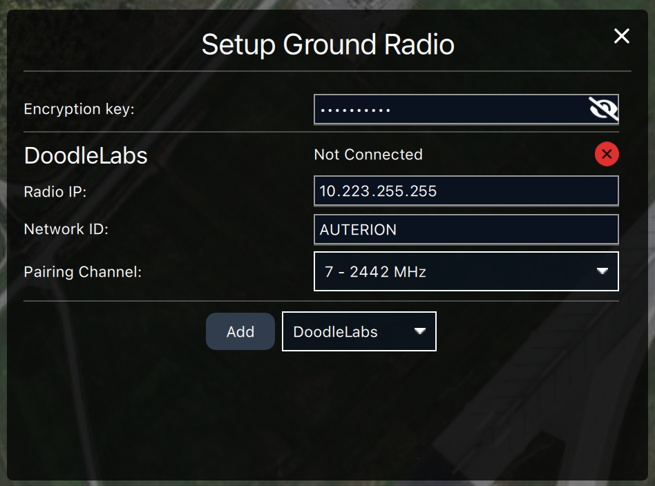 In case you want or need to have custom settings for your Doodle Labs Radio Link, set the **Encryption key**, the **Network ID** and the **Pairing Channel** accordingly.
