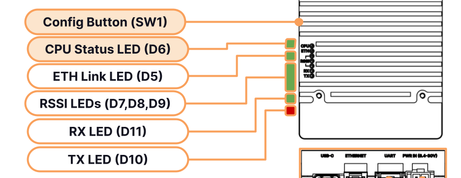3. Press and hold the **Config Button** by inserting a pointy tool such as a paper clip. Once the CPU Status LED begins to flash, keep pressing the button for more than 10s. The module will reboot after you release the button, this takes again about 60-75 seconds.\ <img src="https://3329189600-files.gitbook.io/~/files/v0/b/gitbook-x-prod.appspot.com/o/spaces%2FFW1Ge1p1f6WHyiYCb146%2Fuploads%2Fgit-blob-0ab3601e803d629dc6f16795dd9994080691e341%2FMH%20Carrier%20Interface%20Function%20Map-highlight-config.png?alt=media" alt="" data-size="original"> ​\