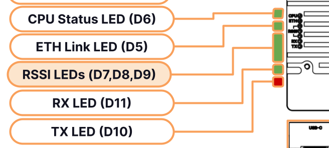 2. Wait until the Microhard is fully booted. Booting takes about 60-75 seconds, and is complete when the three RSSI LEDs (D7,D8 and D9) indicated below start lighting up in a "walking sequence" (i.e. LEDs are active one after another, in a continuous cycle).\ <img src="https://3329189600-files.gitbook.io/~/files/v0/b/gitbook-x-prod.appspot.com/o/spaces%2FFW1Ge1p1f6WHyiYCb146%2Fuploads%2Fgit-blob-159ffa6b69245424c338f2e6bb76d700f8745550%2FMH%20Carrier%20Interface%20Function%20Map-highlight-rssi.png?alt=media" alt="" data-size="original"> ![](https://3329189600-files.gitbook.io/~/files/v0/b/gitbook-x-prod.appspot.com/o/spaces%2FFW1Ge1p1f6WHyiYCb146%2Fuploads%2Fgit-blob-b3e2cce89af7f5dd3a74b9aa0e8eabb25cee883a%2Fmh-led-detail.png?alt=media)​