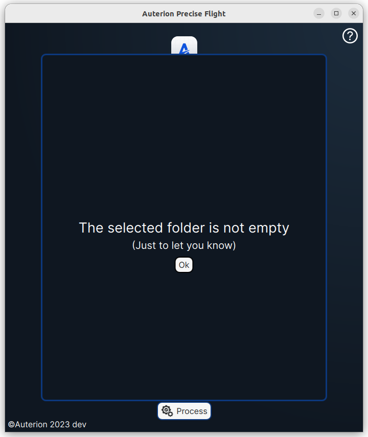 This folder is going to be the output folder. In case the folder is not empty, a popup will be shown.