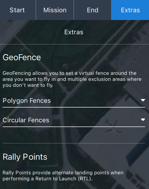 2. Select the **Extras** button in the **Mission editor** to display the *GeoFence Editor*.