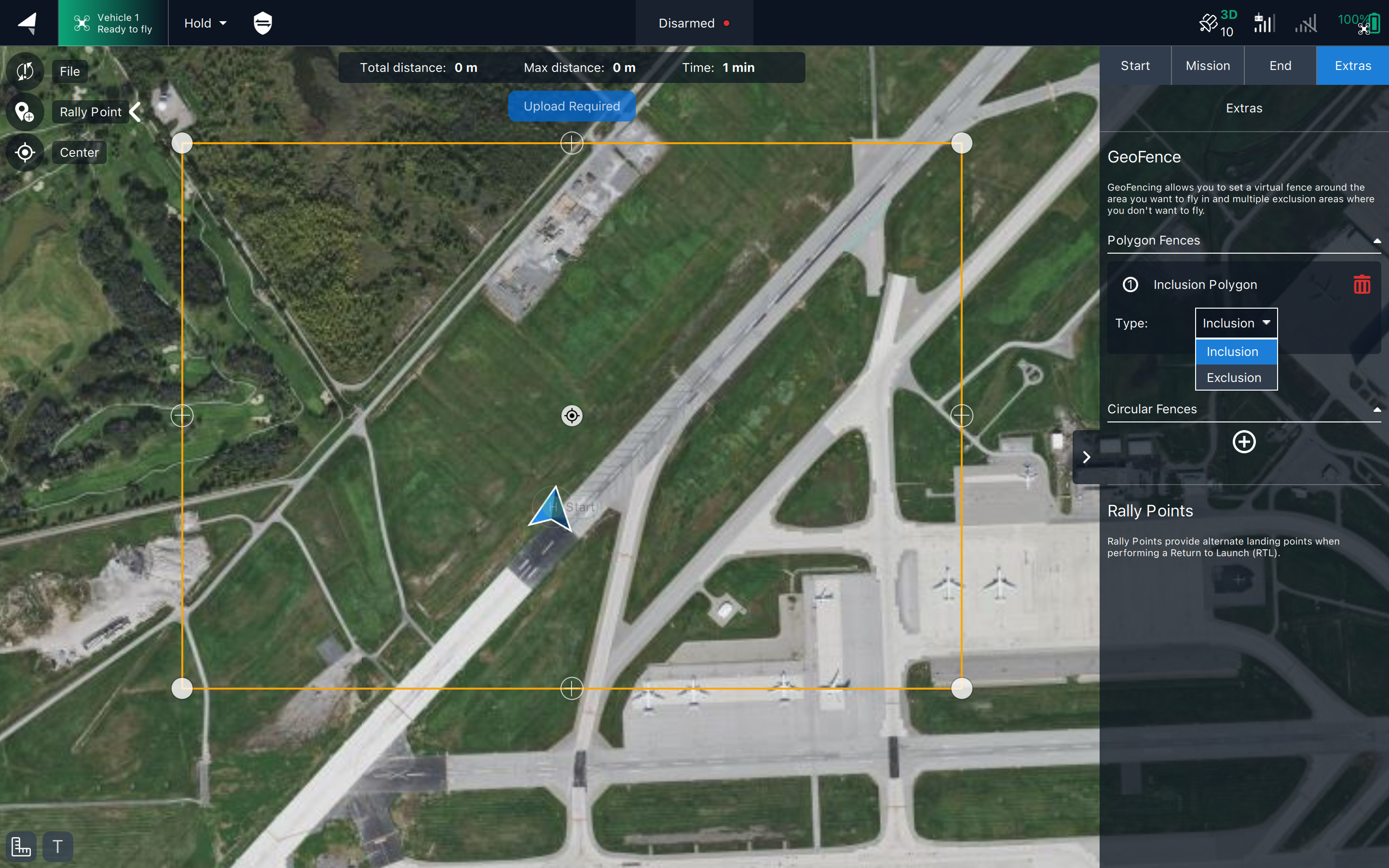 | **Inclusion**                      | Set this fence as an inclusion (vehicle must move within the fence). Uncheck if vehicle must fly outside the region enclosed by the fence. |