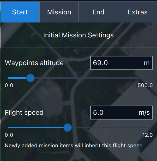 | ***Flight speed***      | Set a flight speed for the mission.                                                                                                                                                                                                                                                                   |