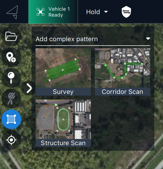 This creates a *template* for a simple end end-to-end structure corridor scan mission for the *current vehicle type*. Often all the user has to do is define the scan area (any items that require configuration are shown with a red border in the mission item list).