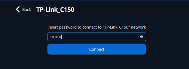 3. Select the network you want to connect to. Insert the password, then press connect.
