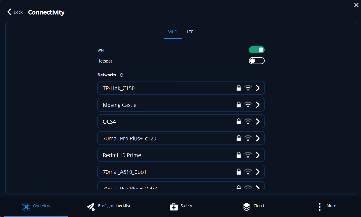 2. The vehicle will switch to hotspot mode, upon success the hotspot will appear in the Networks area