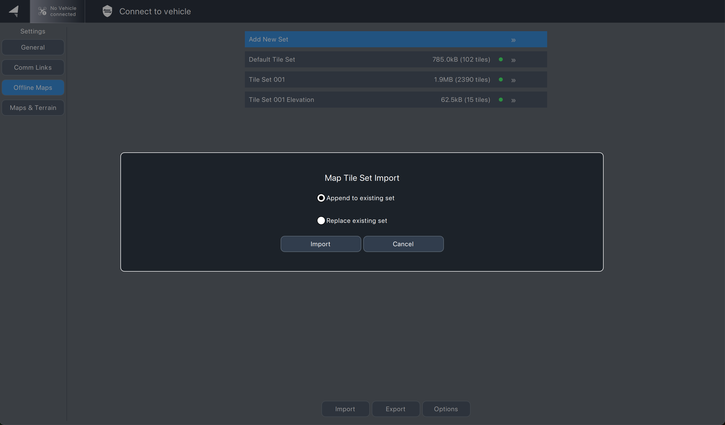 In the ***Settings*** ***menu,*** under ***Offline Maps,*** locate the option ***"Add New Set"***.