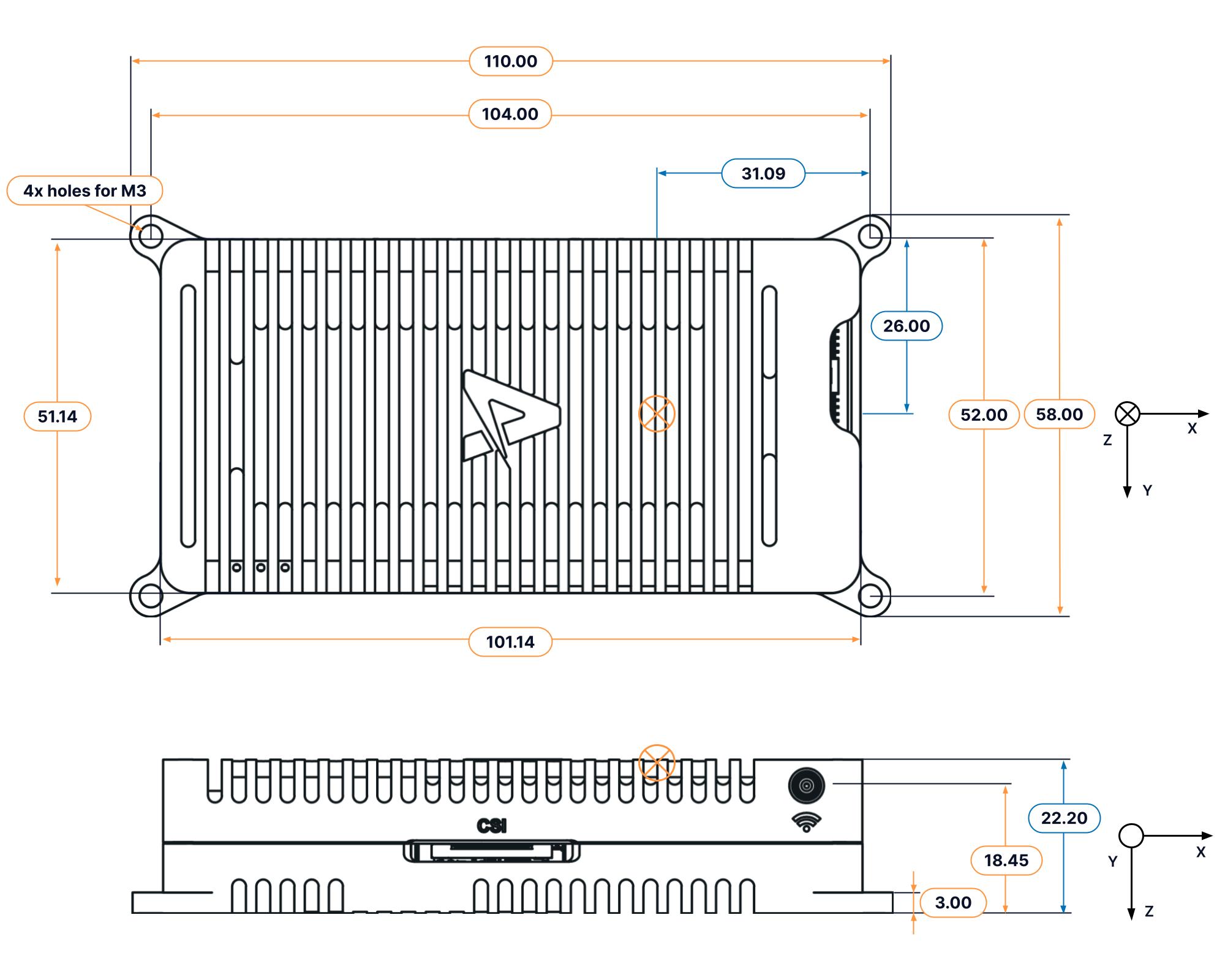 <figure><img src="https://3329189600-files.gitbook.io/~/files/v0/b/gitbook-x-prod.appspot.com/o/spaces%2FFW1Ge1p1f6WHyiYCb146%2Fuploads%2Fgit-blob-fe849927acd8380ebcf605ebc28556cef1cb0b37%2FSkynodeX_Dimensions.jpg?alt=media" alt=""><figcaption><p>Skynode X Dimensions</p></figcaption></figure>